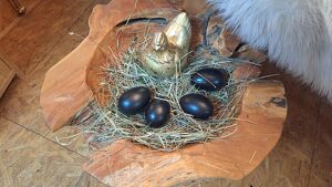 Es erwartet Sie österliche Dekoration von Holzwaren, Osterhasen, Straußen- und Gänseeiern und vieles mehr, für drinnen und draußen. Einzigartig sind auch die Sprüchetafeln aus rostigem Blech, die nicht nur handwerklich hergestellt werden sondern auch auf Wunsch mit „ihrem Spruch“ beschriftet werden können.Wir freuen uns auf Ihren Besuch.